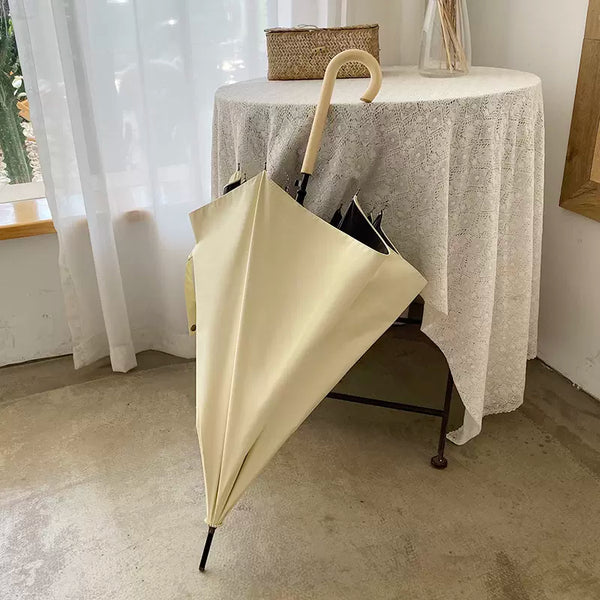 長めのウッドハンドルが特徴的な長傘。