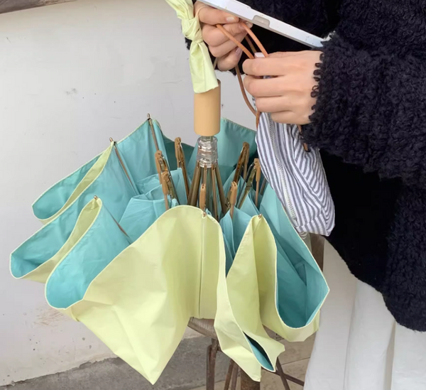 2color 日傘 晴雨兼用 折りたたみ UPF50+ UVカット率95~98% 木調ハンドル インサイドカラー 318g